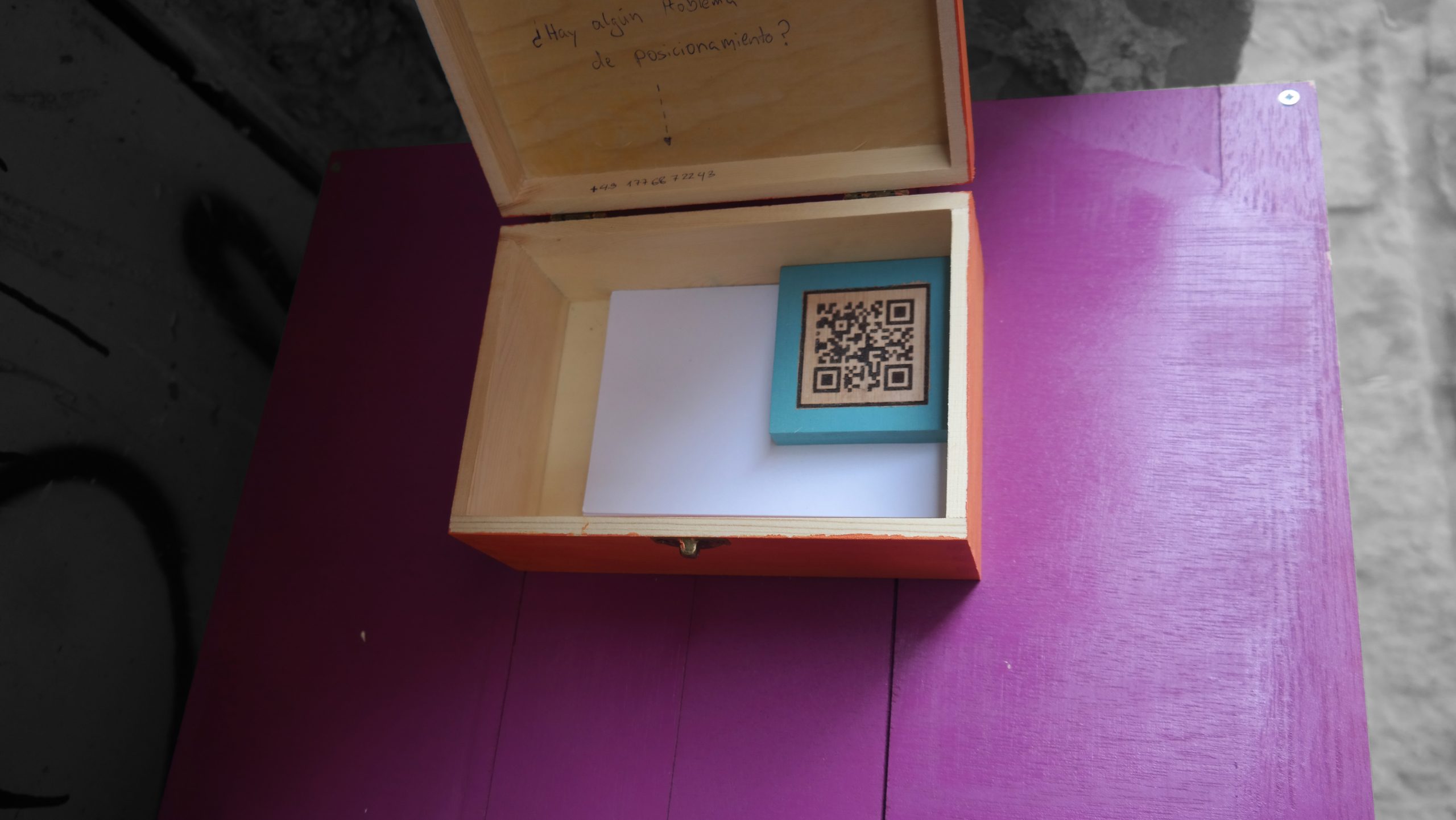 The box, which can be seen in this video, was placed in different areas of the city centre from Monday to Friday and formed the basis for further elaboration of the areas of the “public transport” as well as the subcategory of the public spaces “plazas”. It contained a little piece of wood with a QR code, which informed about my Intention and as well showed a map with the next locations.